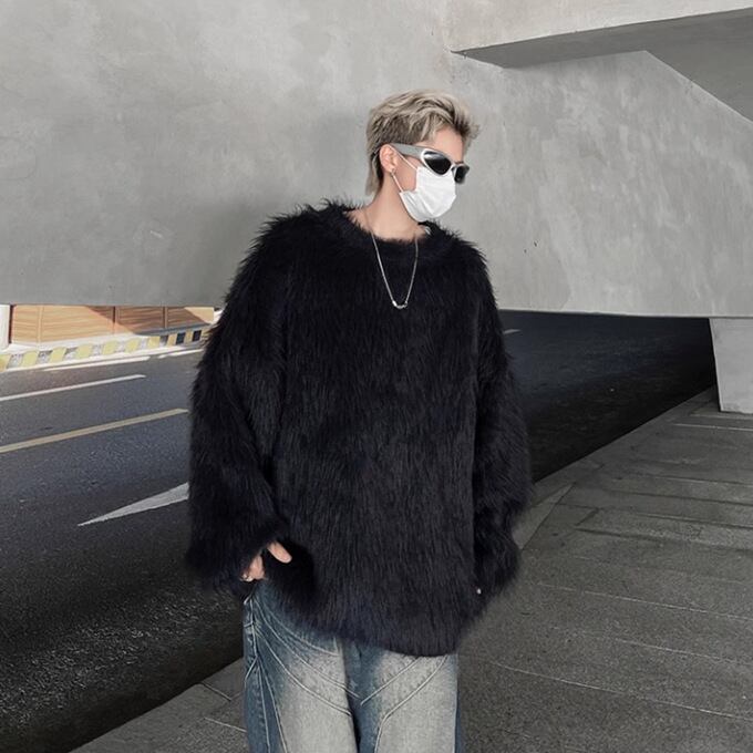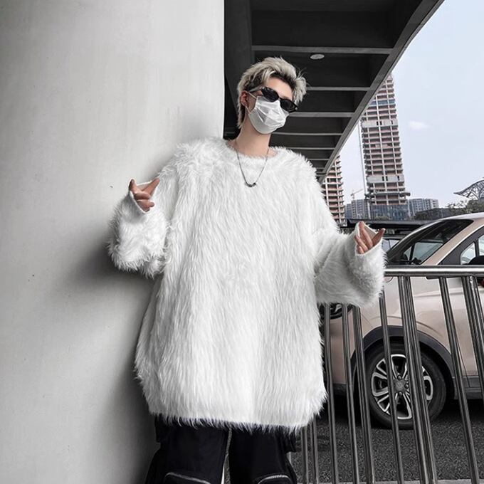 セーター メンズ レディース 長袖 クルーネック メンズセーター レディースセーター カップル フェイクミンクファー レトロ モコモコ 肌触りいい ゆったり トップス カジュアル おしゃれ 高級感 無地 白 黒 暖かい あったか 秋 秋冬 秋服 冬服 送料無料