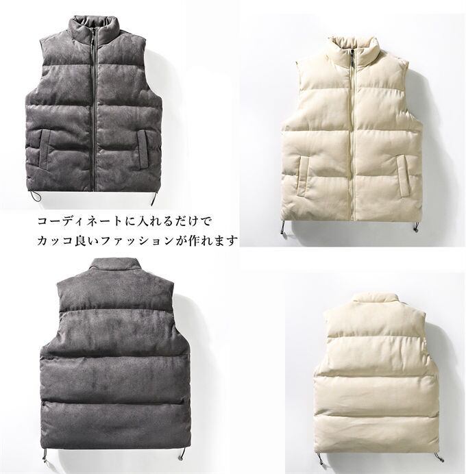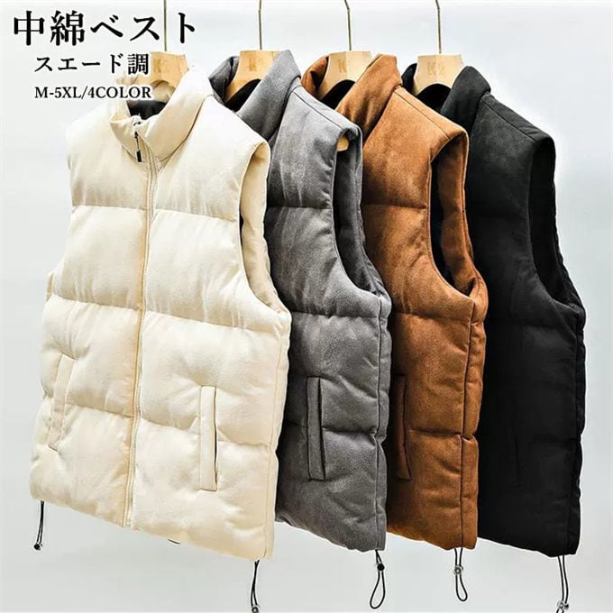 ベスト メンズ アウター チョッキ 中綿ベスト 中綿入れ 羽織り 立ち襟 スエード調 春 秋 冬 ノースリーブ 紳士 普段着 無地 ファッション カジュアル 大きいサイズ お洒落 アウター 厚手 保温性 防寒対策 暖かい 秋服 冬 冬服 通勤 送料無料