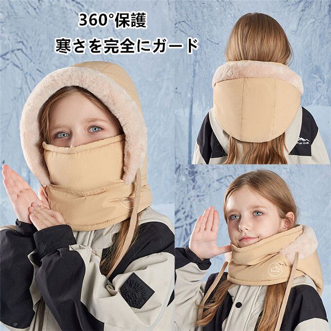 子ども帽子 冬 キッズ 子供 ネックウォーマー 帽子 マスク 耳あて フードウォーマー スカーフ 冬用 暖かい あったか シンプル かわいい 保温性 防寒 裏起毛 柔らかい ふわふわ 360°保護 通学 自転車 スキー 雪遊び 男の子 女の子 4-10歳 クリスマス プレゼント ギフト 送料無料