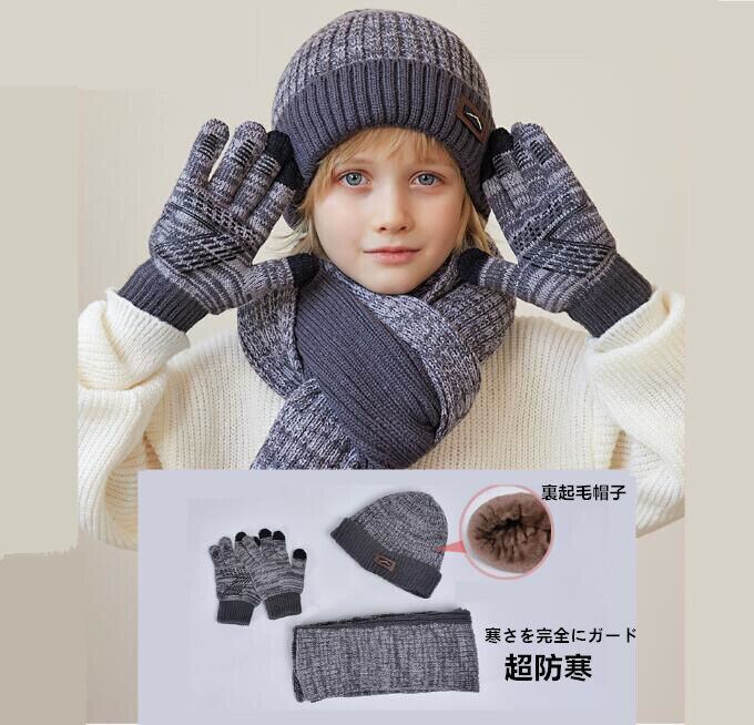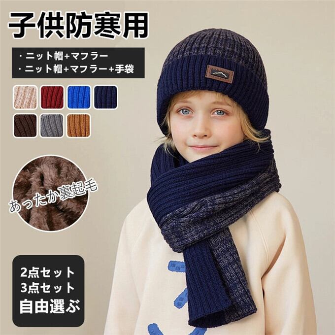 【二点セット】【送料無料】子ども帽子 冬 ニット帽 帽子 マフラー セット 女の子 男の子 ネックウォーマー 手袋 グローブ 子供用 暖かい 保温 防寒 裏起毛 あったか ふわふわ 可愛い かわいい シンプル 寒さ対策 小学生 通学 スキー 雪遊び 自転車 誕生日 プレゼント ギフト 三点セット