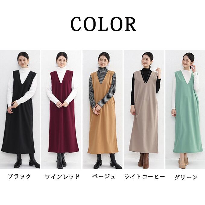 ジャンパースカート ワンピース レディース Vネック ノースリーブ ワンピ ース シンプル スリット 深Vネック マキシ丈 ロング丈 ゆったり 大きいサイズ レイヤード 重ね着 体型カバー 春 秋 冬 おしゃれ きれいめ 送料無慮う