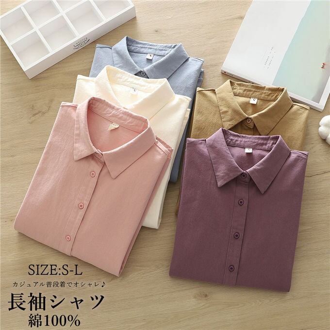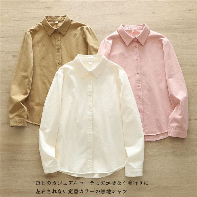 長袖シャツ コットン 綿100% シャツ レディース カジュアルシャツ 無地 ゆったり トレンド おしゃれ かわいい オフィス 大人 可愛い ビジネス フォーマル 20代 30代 40代 50代 レトロ 韓国ファッション 春 秋 冬 送料無料