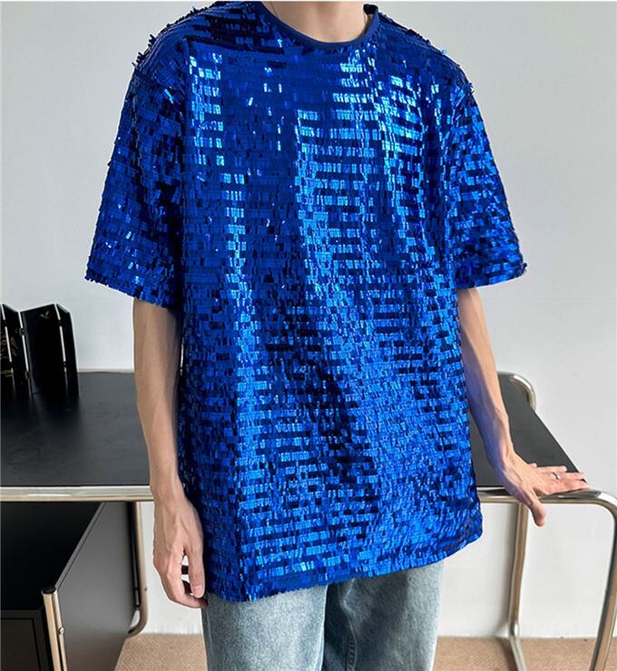 Tシャツ メンズ 半袖 光沢 ファッション おしゃれ スパンコール Tシャツ ゆったり ダンス衣裳 メンズ 半袖 ジャズダンス ヒップホップ ストリートダンス衣装 トップス スパンコール キラキラ 舞台 演出服 団体服 ステージ衣装